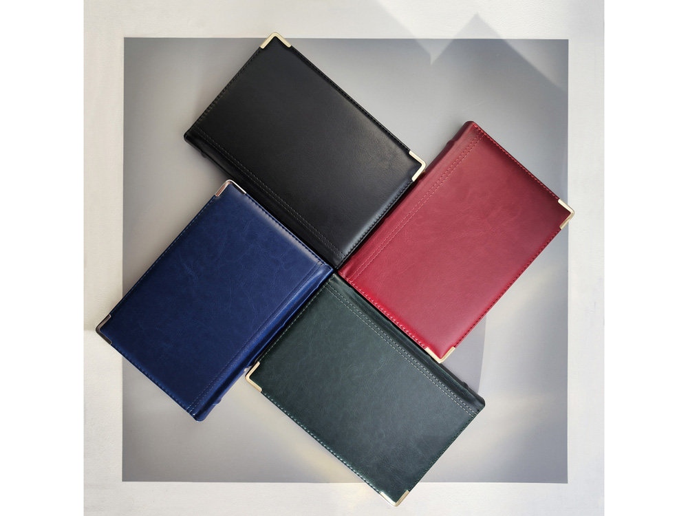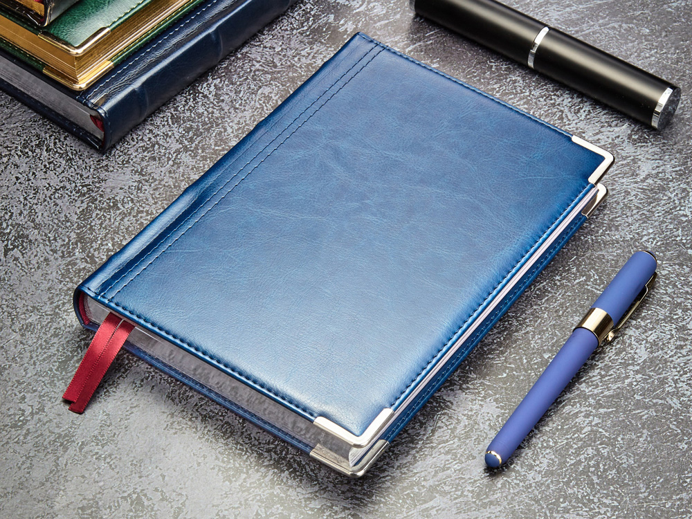 Полудатированный ежедневник Boss от бренда Bruno Visconti - это качественный корпоративный подарок по выгодной цене, произведенный специально под персонализацию. Представлен в универсальном формате А5 и состоит из 416 страниц. Классический деловой ежедневник линии Boss – образец элегантности. Гладкую тонкую фактуру экокожи подчеркивает декоративная строчка по контуру и металлические закругленные уголки золотистого цвета. В ежедневнике есть полезная справочная информация и телефонная книга, а также страницы для записи идей, мыслей и составления рабочих планов. Есть перфорация (нижние уголки отрывные). Для изготовления страниц используется качественный бежевый офсет повышенной плотности (80 г/кв м), которая производится японской фирмой Daiwa и подходит для всех видов чернил. Ежедневник можно персонализировать с помощью тиснения обложки - золотой или серебряной фольгой. Наши ежедневники помогут быть успешным и эффективным в карьере и повседневной жизни!