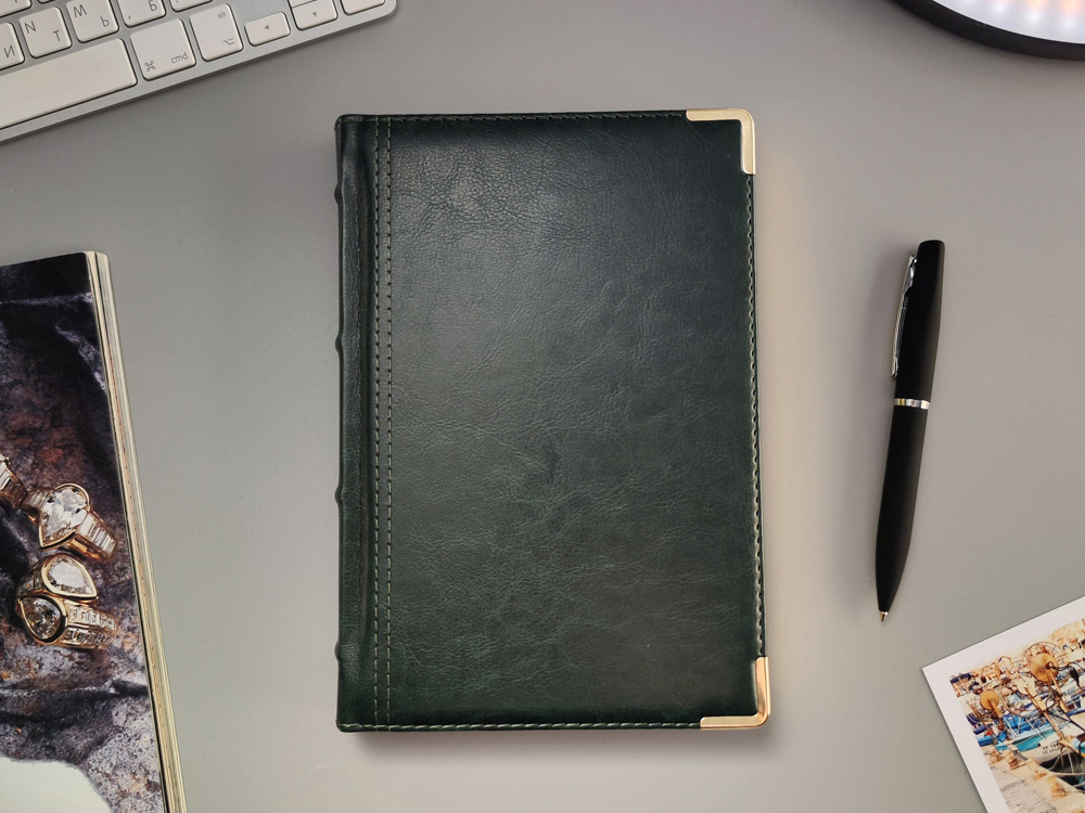 Полудатированный ежедневник Boss от бренда Bruno Visconti - это качественный корпоративный подарок по выгодной цене, произведенный специально под персонализацию. Представлен в универсальном формате А5 и состоит из 416 страниц. Классический деловой ежедневник линии Boss – образец элегантности. Гладкую тонкую фактуру экокожи подчеркивает декоративная строчка по контуру и металлические закругленные уголки золотистого цвета. В ежедневнике есть полезная справочная информация и телефонная книга, а также страницы для записи идей, мыслей и составления рабочих планов. Есть перфорация (нижние уголки отрывные). Для изготовления страниц используется качественный бежевый офсет повышенной плотности (80 г/кв м), которая производится японской фирмой Daiwa и подходит для всех видов чернил. Ежедневник можно персонализировать с помощью тиснения обложки - золотой или серебряной фольгой. Наши ежедневники помогут быть успешным и эффективным в карьере и повседневной жизни!