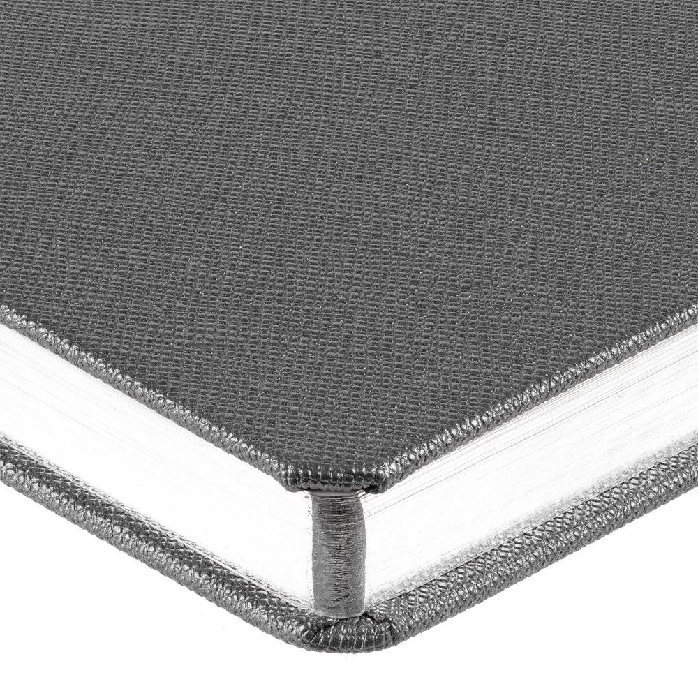 Ежедневник в обложке из плотного фактурного материала c четким геометрическим рисунком и металлическим блеском.