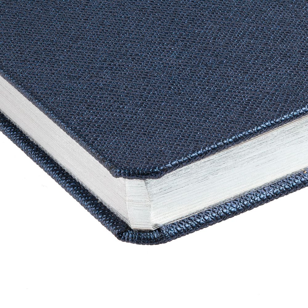 Ежедневник с твердой обложкой и серебристым обрезом, выполнен из материала Saffian, синий НН, дополнен ляссе в цвет обложки.