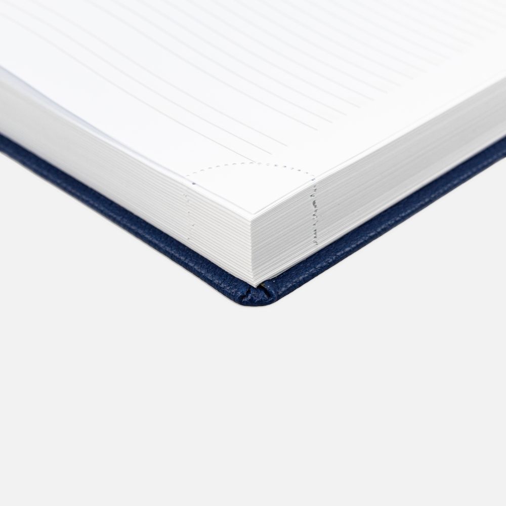 Ежедневник в твердой обложке c поролоном, выполнен из материала La Fite, темно-синий ХХ, дополнен ляссе белого цвета.