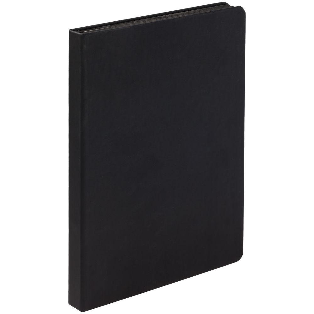 Ежедневник с твердой обложкой и тонированным обрезом, выполнен из материала Soft Touch, черный АА, дополнен ляссе в цвет обложки.