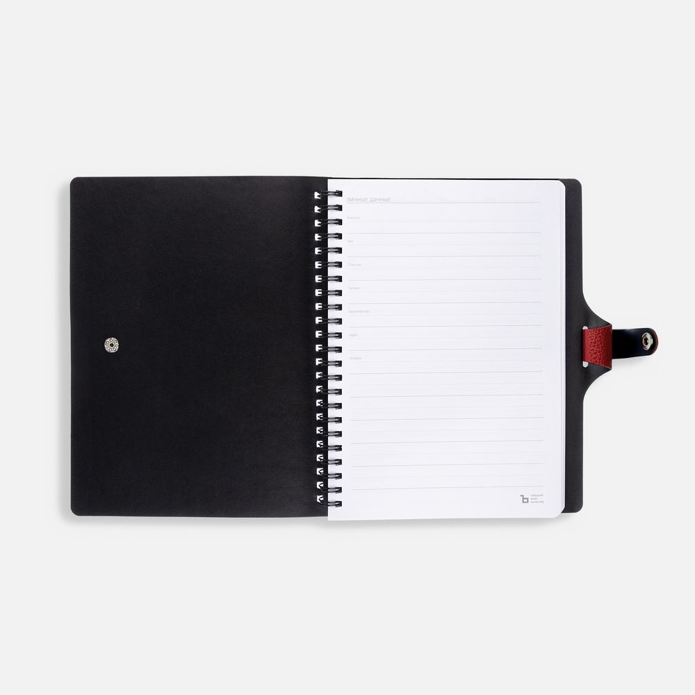 Ежедневник с гибкой обложкой, выполнен из материалов La Fite, малиновый LL и Waltz черный АА.