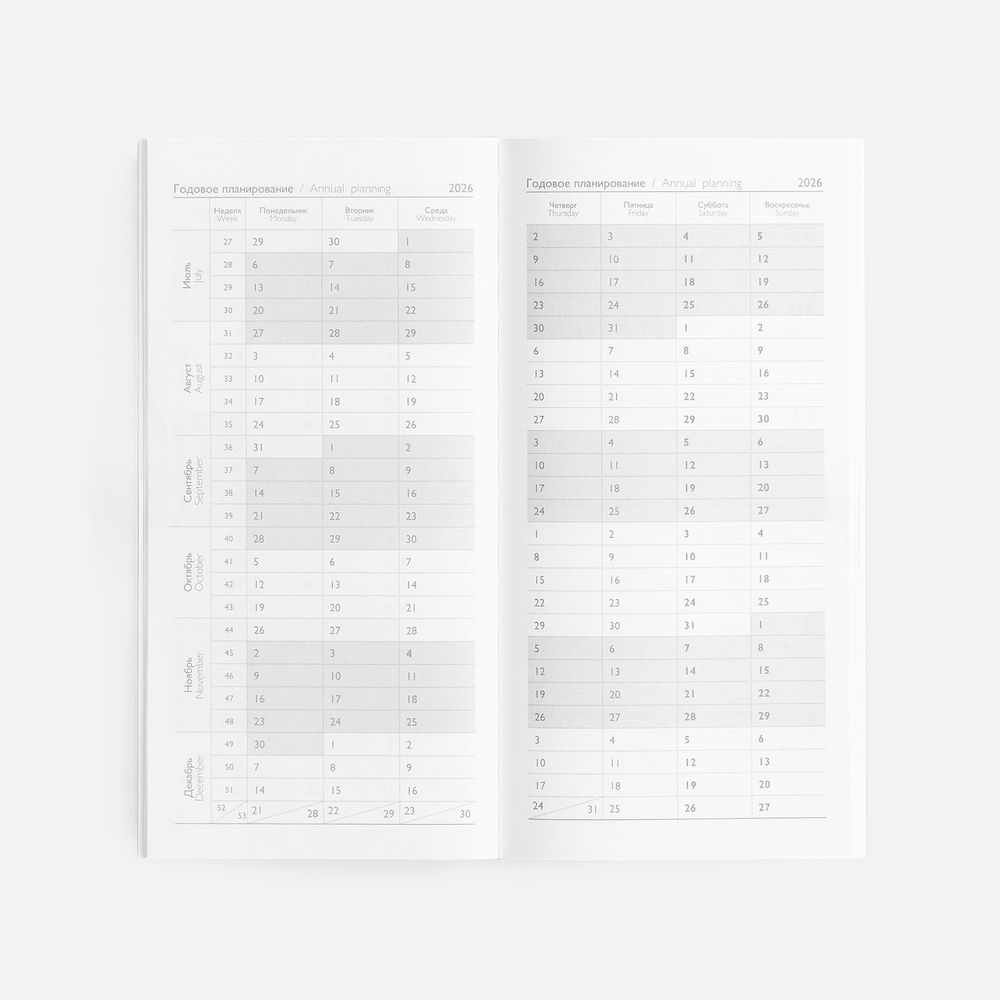 Еженедельник с твердой обложкой с поролоном из искусственной кожи, дополнен декоративной строчкой, капталом и ляссе в цвет.