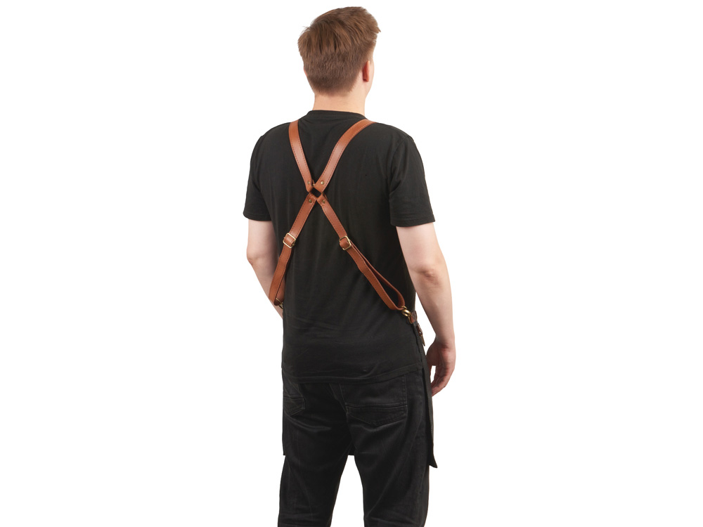 - Стильные акценты: Ремни светлого бука не только удобно фиксируют фартук, но и добавляют контраста черному цвету, делая его настоящим модным заявлением.