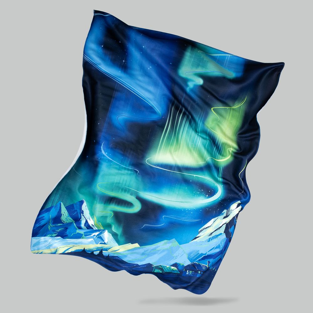 Чтобы прикоснуться к этой мечте Севера, можно начать с живописного пледа «Сияй!» — это и пожелание на будущий год, и способ стать ближе к ускользающей красоте авроры. И может, плед с таким завораживающим, словно акварельным пейзажем поможет по-настоящему почувствовать сияние — и сиять так ярко, как не сиял никто.
