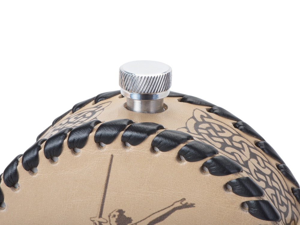 Фляга круглой формы выполнена из нержавеющей стали, что гарантирует ее прочность, гигиеничность и долговечность.