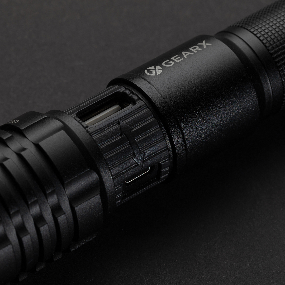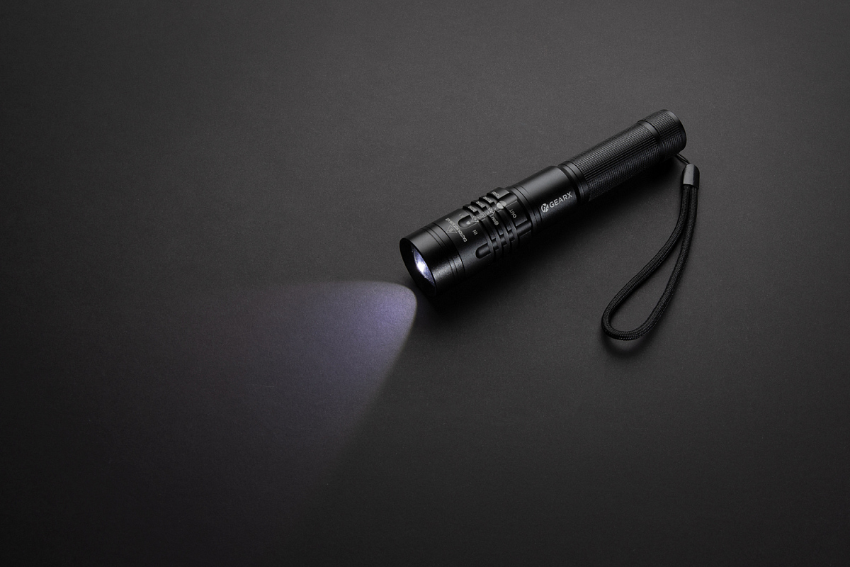 Функциональность, производительность и дизайн сочетаются в этом фонаре Gear X с аккумулятором, который можно заряжать снова и снова. Корпус из высококачественного алюминиевого сплава комфортно ложится в руку. Благодаря классу защиты IP4 подходит для использования на улице даже в ненастную погоду. Мощная лампа обеспечит вам яркость до 1000 люмен и длину луча до 500 метров. Фонарь оснащен аккумулятором, который легко подзарядить при помощи USB-кабеля. 5 режимов освещения, включая сигнал SOS. Аккумулятора емкостью 2000 мАч достаточно, чтобы использовать фонарь до 4 часов без подзарядки. , высота 16,8 см., диаметр 3,2 см.