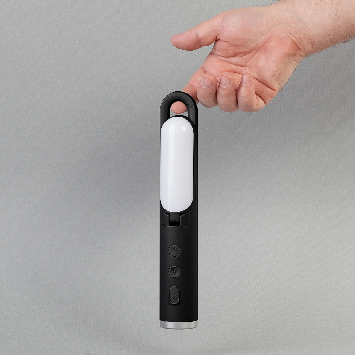 Комфортная посадка в руке в сложенном виде. Карабин - опция must-have для активного отдыха.