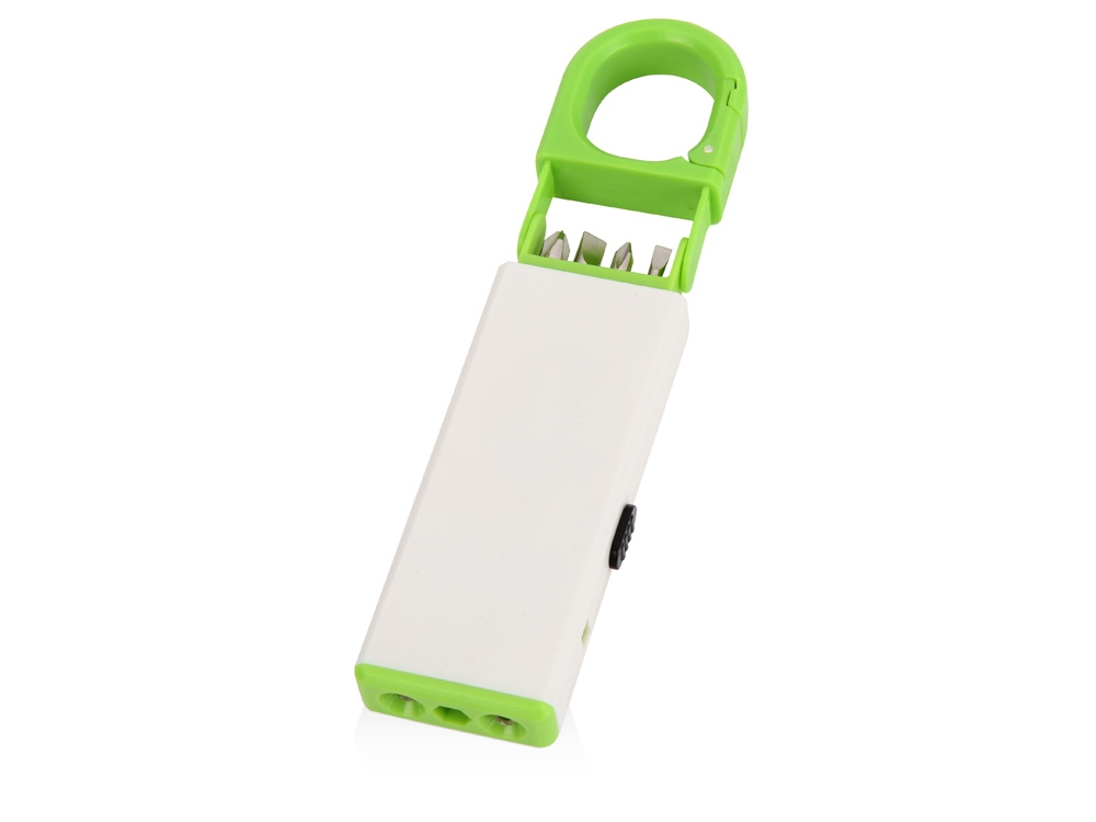 Компактный и удобный светодиодный фонарик скрывает под корпусом небольшой набор инструментов. Фонарик можно прикрепить к ключам при помощи специальной застежки. На поверхность корпуса можно разместить логотип.