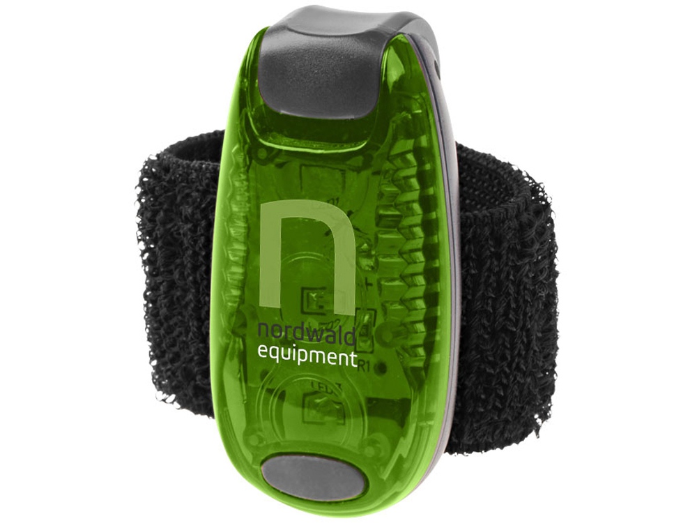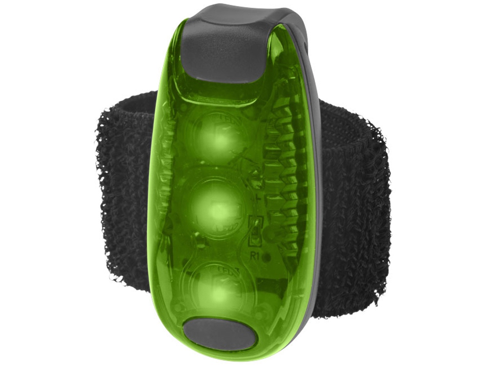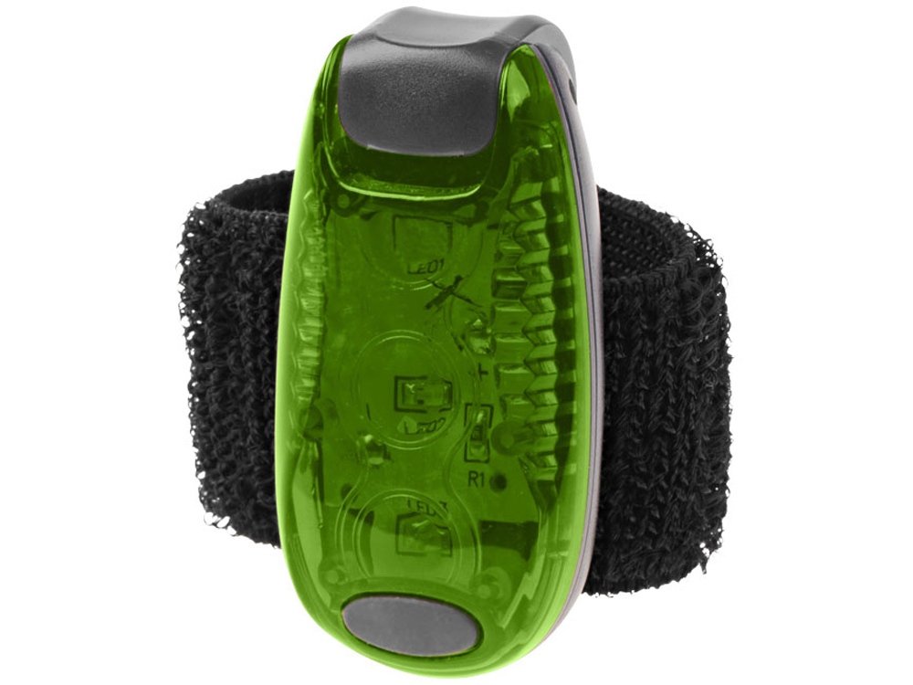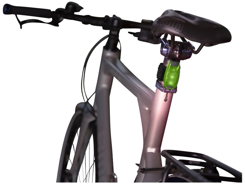 Фонарик Rideo. Фонарик для безопасности с кнопкой включения/выключения и двумя режимами: мигание и постоянный свет. Липучка для крепления к велосипеду или рюкзаку. Батарейки в комплекте. Пластик.