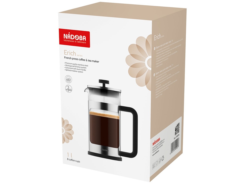 Френч-пресс ERICH, 1 л можно заказать в нашей компании по самой доступной цене от 2 499 рублей.