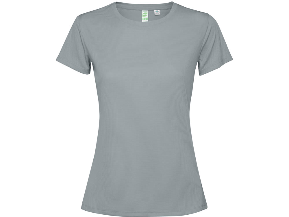 Женская футболка с коротким рукавом из технологичного полотна. Отстрочки в тон. Спинка с удлинением. Боковые швы со смещением вперед.