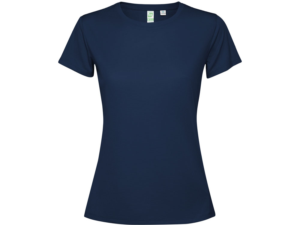Женская футболка с коротким рукавом из технологичного полотна. Отстрочки в тон. Спинка с удлинением. Боковые швы со смещением вперед.