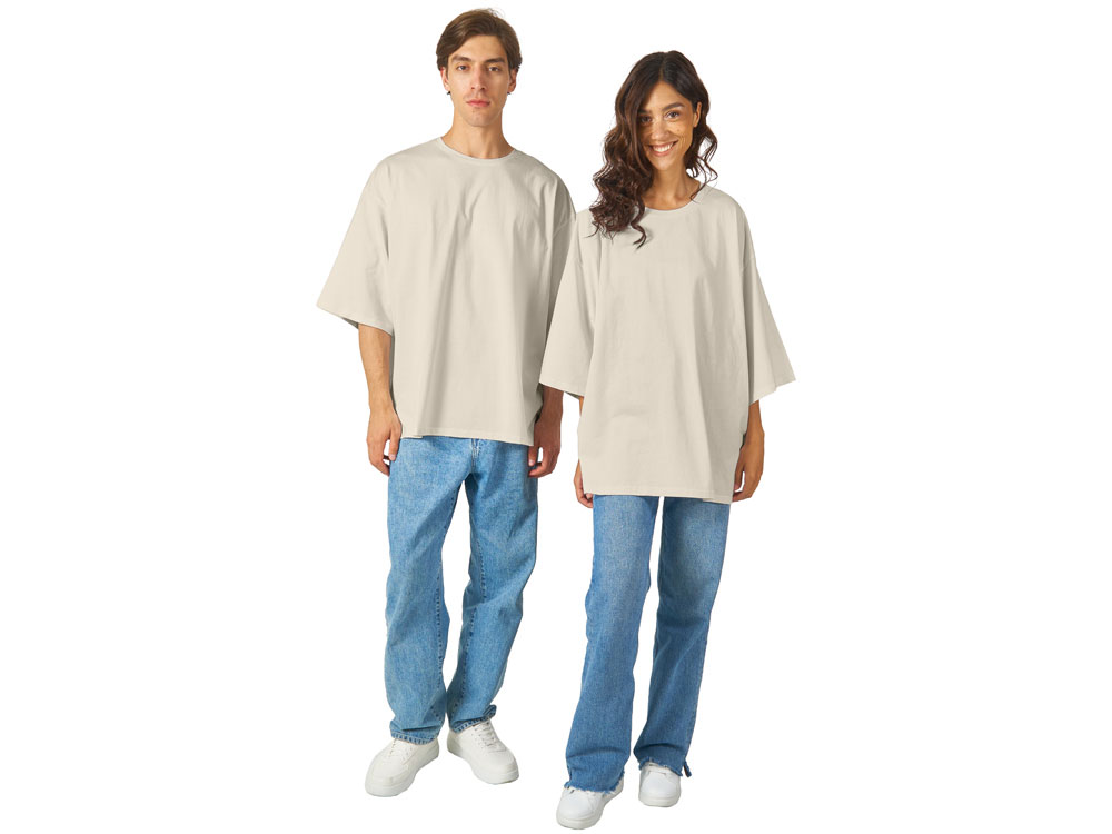 Футболка унисекс расширенного силуэта со спущенным плечом и удлиненной линией рукава. Футболка выполнена из плотного джерси 180гр. Горловина спинки дополнительно укреплена тесьмой из основной ткани. Скрытый лейбл позволит сделать акцент на брендировании клиента.