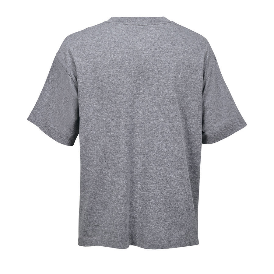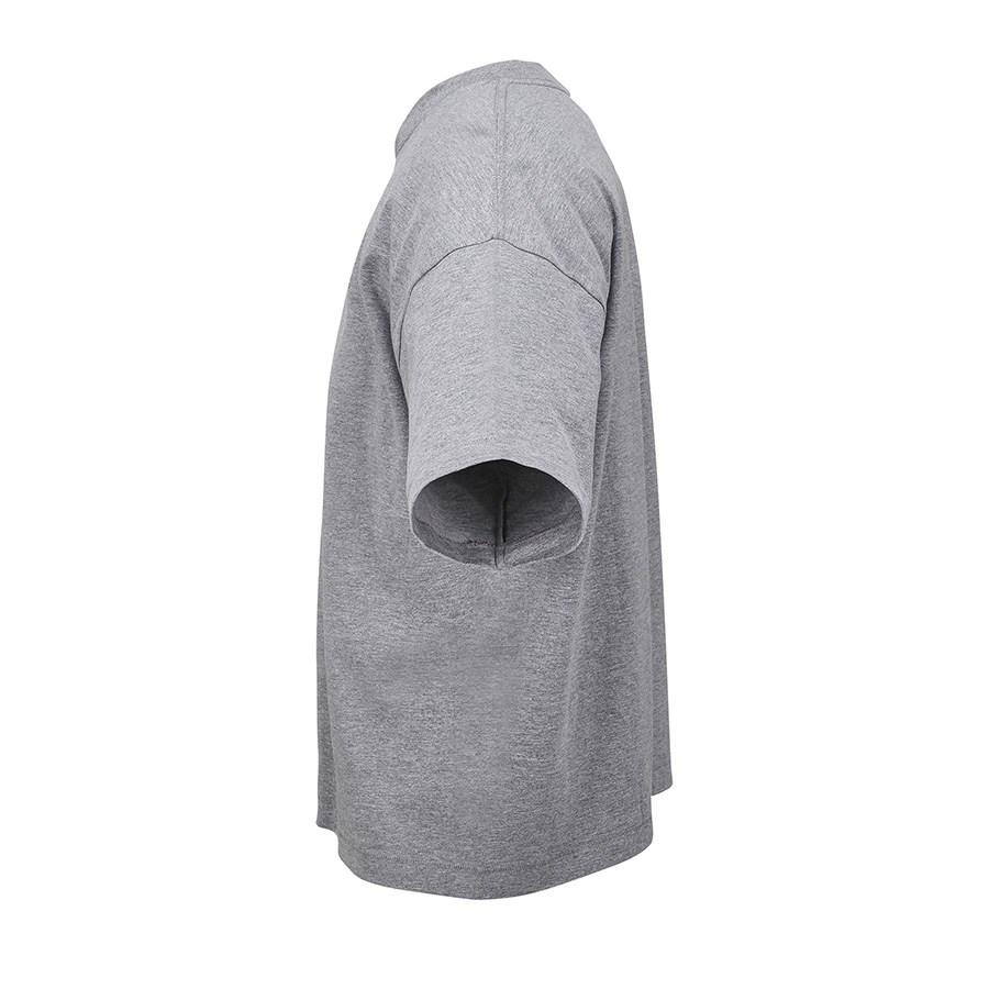Футболка оверсайз унисекс с круглым вырезом, без боковых швов, высокой плотности. Выполнена из смеси переработанного хлопка (50%) и обычного хлопка (50%).
