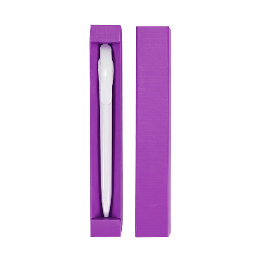 Футляр из дизайнерского картона с тиснением и ламинацией. Подходит для ручек и карандашей длиной до 145 мм и диаметром до 12 мм. Цвет, близкий к Pantone 298C.