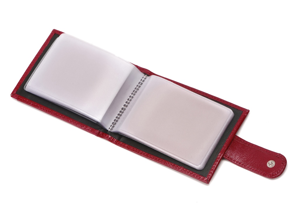 Стильный футляр для визиток выполнен из приятной на ощупь натуральной кожи классического бордового цвета. Футляр поможет сохранить до 40 ценных контактов.