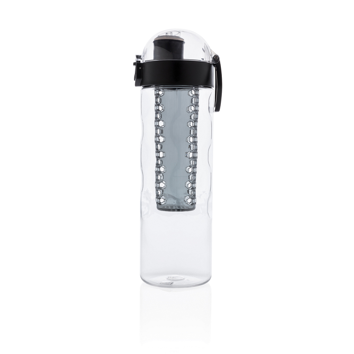 Пейте еще более вкусную и полезную воду, добавив в нее фрукты! Когда вы пьете из этой стильной бутылки, одна ваша рука остается свободной. Крышка открывается легким нажатием на кнопку, на которой предусмотрен специальный механизм блокировки, исключающий случайное нажатие. На бутылке предусмотрена удобная ручка для переноски. Эта бутылка с контейнером для фруктов изготовлена из прочного инновационного материала Tritan, который не впитывает запахи и не содержит BPA. Объем 700мл. Зарегистрированный дизайн® , высота 24,8 см., диаметр 7,2 см.