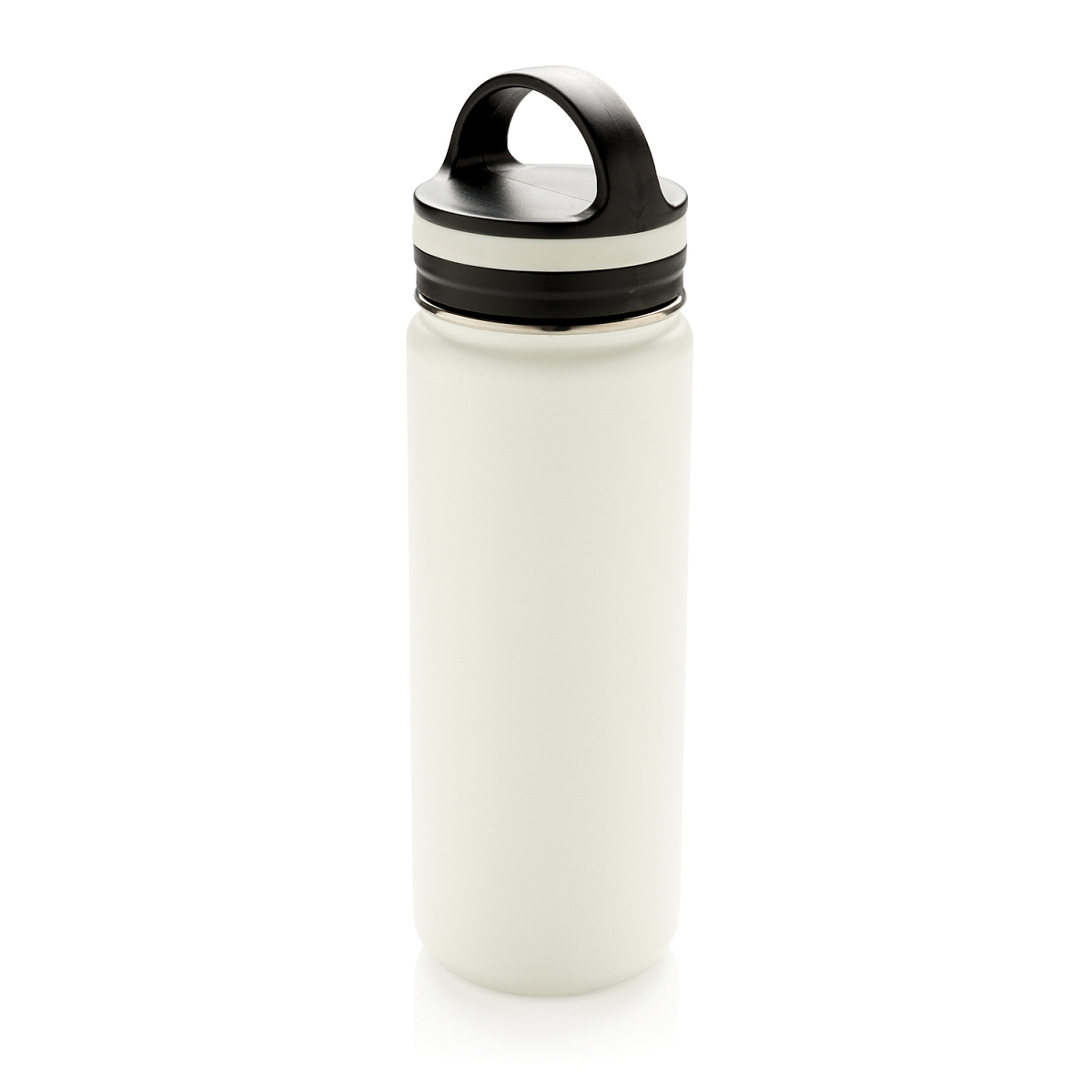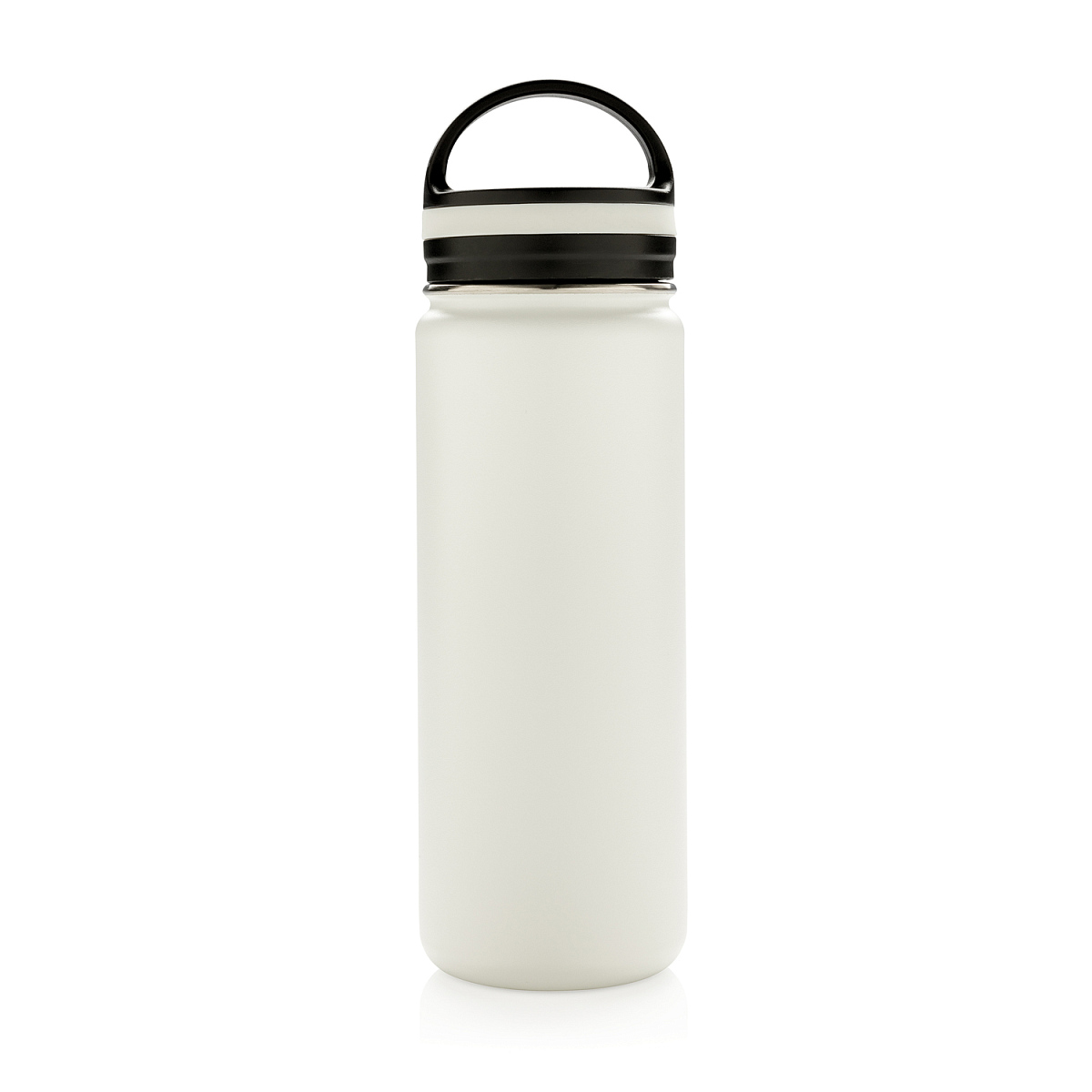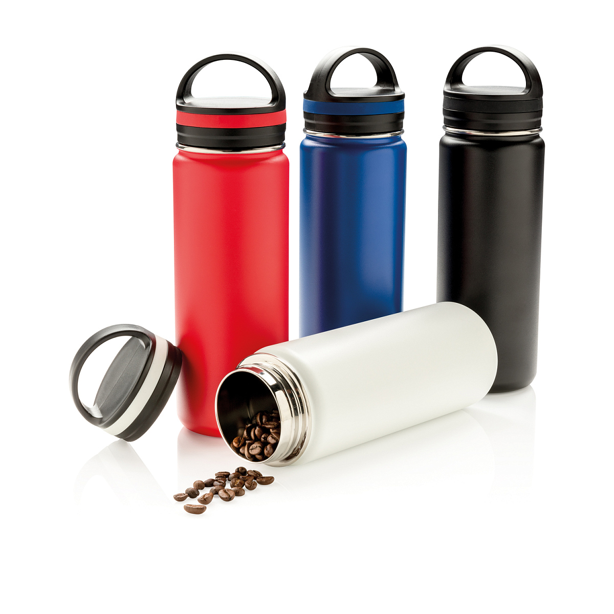Герметичная вакуумная бутылка с двойными стенками и удобной ручкой черного цвета, изготовленная из нержавеющей стали с порошковым покрытием. Широкое горлышко для легкого наполнения и очистки. Идеально подходит для длительных прогулок, пляжного отдыха или даже офиса. Внутренний слой из стали марки 304 и внешний марки 201 сохраняет ваши напитки горячими до 5 часов и холодными до 15 часов. Объем: 500 мл. Длина 8 см., ширина 8 см., высота 25 см., диаметр 7,3 см.