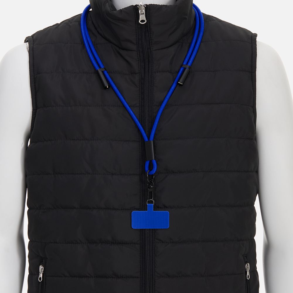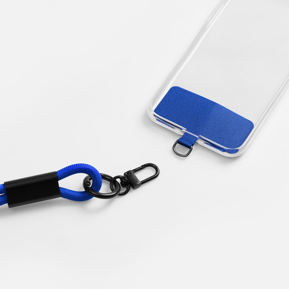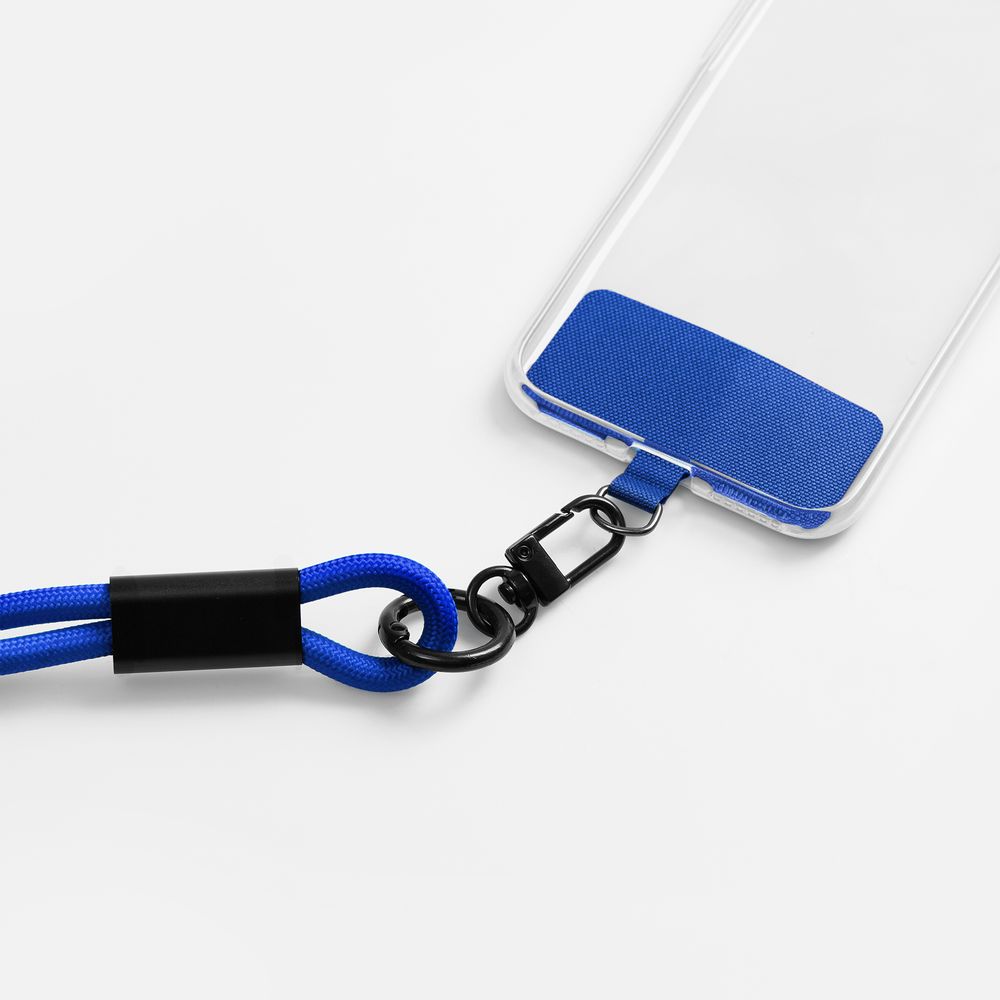 Важно: Для крепления телефона на ланьярд телефон должен иметь чехол. Если ланьярд распускается под тяжестью смартфона, убедитесь, что среднее из трех колец фурнитуры находится по центру ланьярда (на шее под затылком), а не сбоку. Соседние ветви оплетки должны идти вместе, без зазоров, так достигается трение ткани о ткань. Слишком тяжелые смартфоны (диагональ 6,9" и более) могут распускать ланьярд при энергичных движениях.