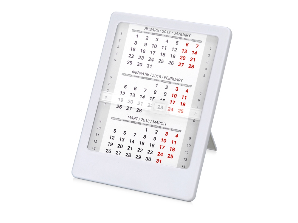 Настольный календарь на 2020 год выполнен из качественного пластика и имеет возможность менять календарную сетку на квартал. На пластиковый корпус прекрасно наносится логотип и символика компании. Цвета в ассортименте.