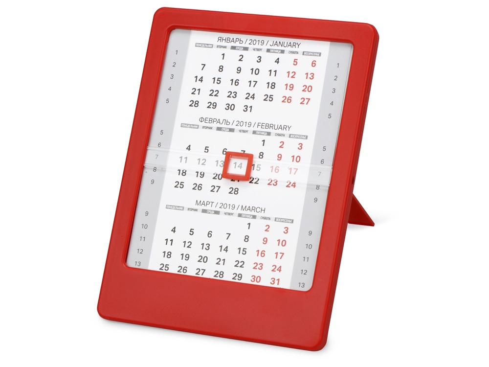 Настольный календарь на 2020 год выполнен из качественного пластика и имеет возможность менять календарную сетку на квартал. На пластиковый корпус прекрасно наносится логотип и символика компании. Цвета в ассортименте.