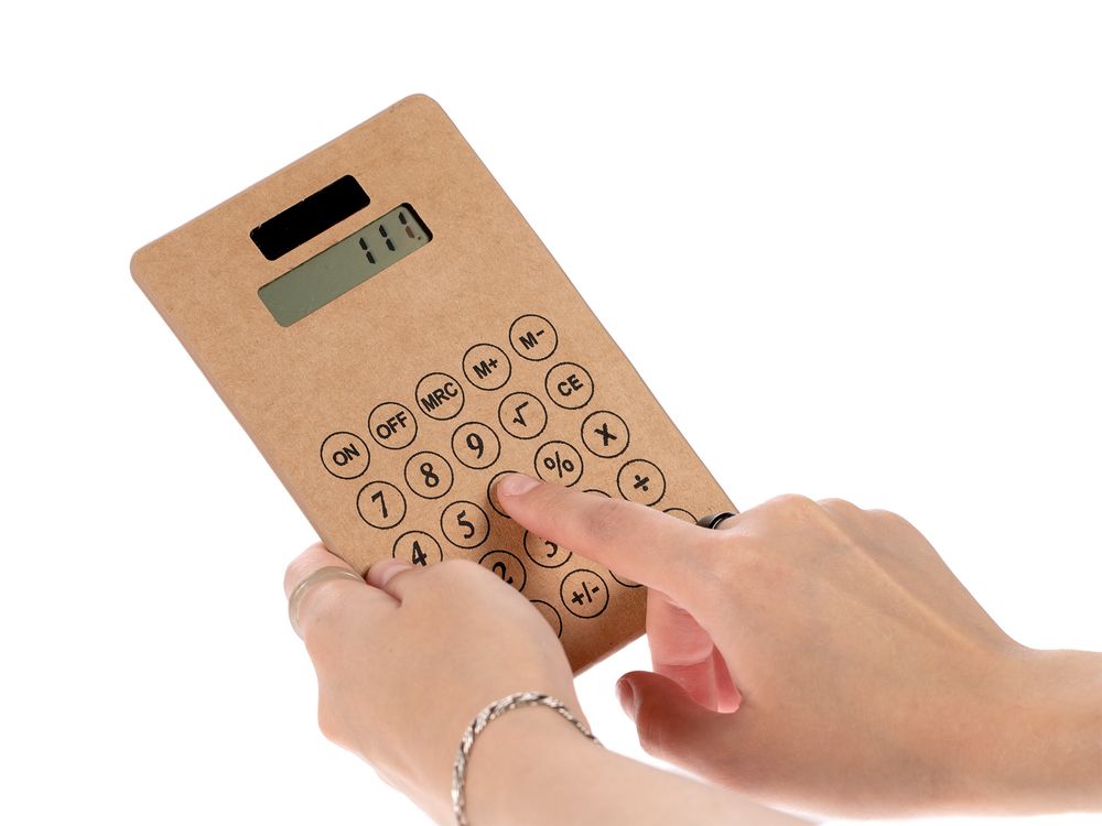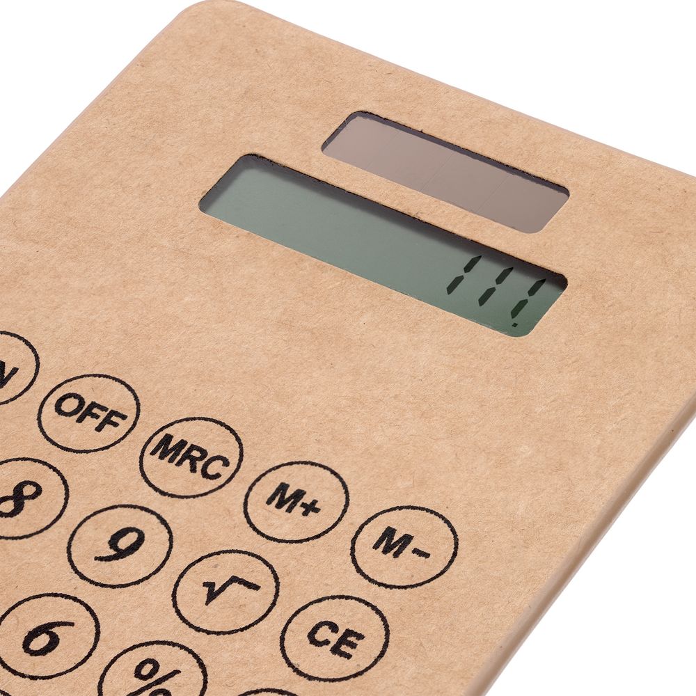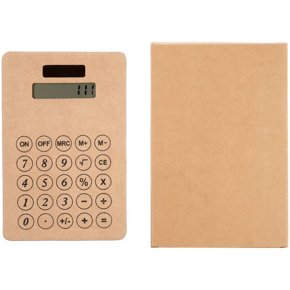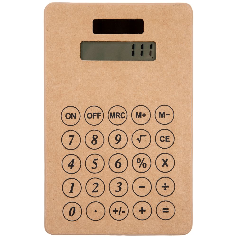 Компактный калькулятор из крафтового картона с крупными клавишами.