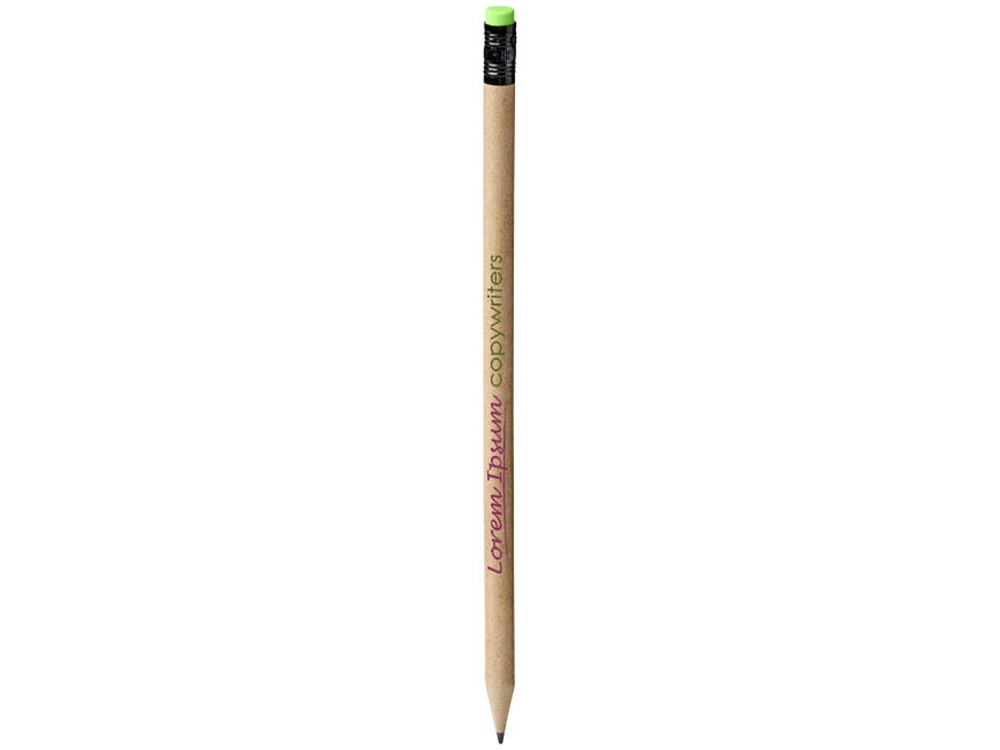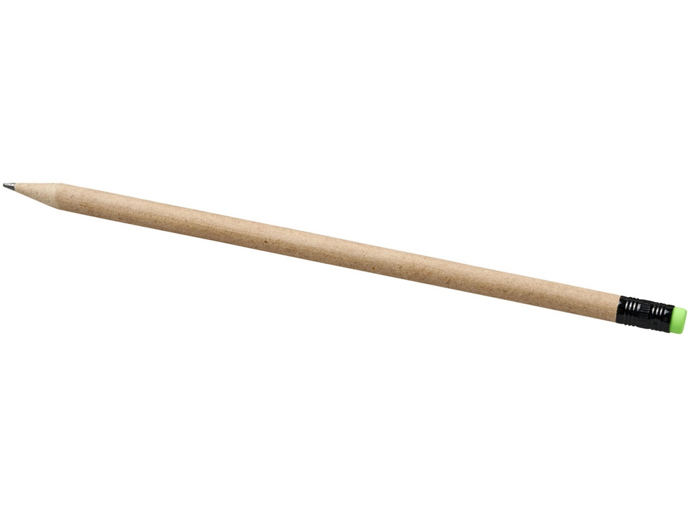 Карандаш Asilah из бумаги вторичной переработки. Экологически чистый карандаш с корпусом из бумаги вторичной переработки и зеленым ластиком в верхней части. Цвет бумаги вторичной переработки может отличаться. Не заточенный. Бумага вторичной переработки.