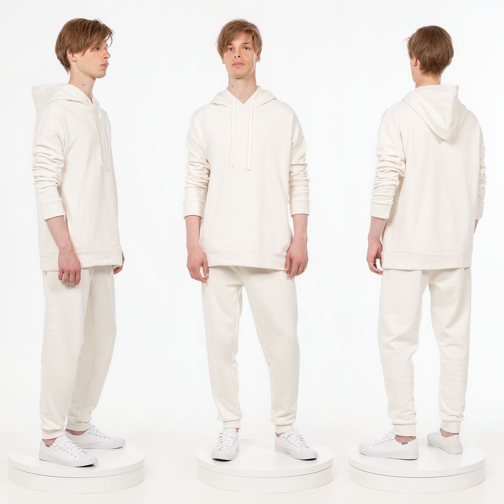 Базовая повседневная одежда актуального покроя в стиле унисекс разработана в рамках единой коллекции и легко собирается в комплекты. Специально спроектированные лекала и технологии пошива открывают простор для любых вариантов кастомизации и нанесения изображений. На видимой части изделий нет лейблов с айдентикой бренда, а название бренда с уходника легко удалить.