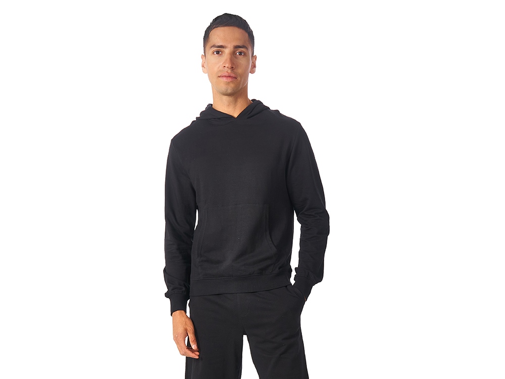 Чтобы худи дольше сохраняло форму, горловина усилена тесьмой со внутренней стороны спинки, а манжеты и низ отстрочены и отделаны рибом 2х2.