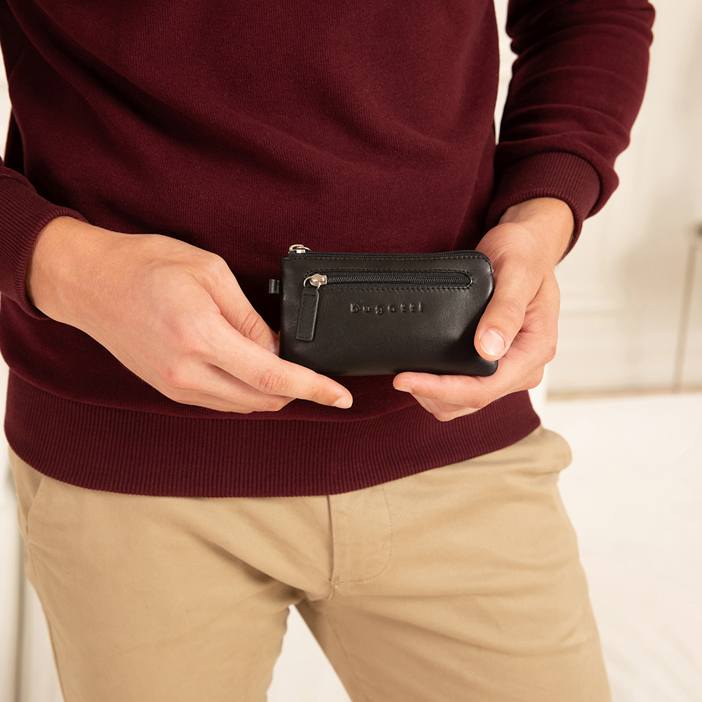 Ключница BUGATTI Primo, чёрная, натуральная воловья кожа, 12,5х0,5х7 см можно заказать в нашей компании по самой доступной цене от 4 080 рублей.
