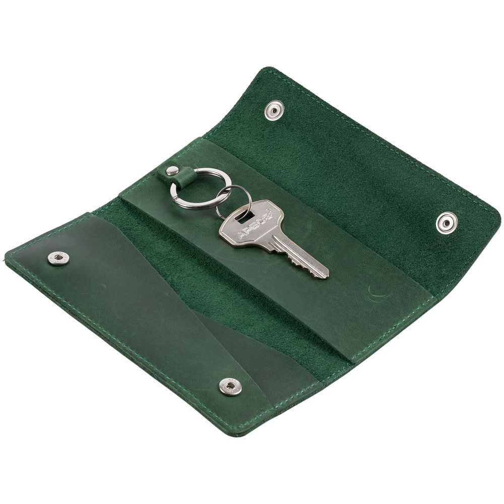 Внутри кольцо для крепления ключей длиной до 12 см. Застегивается на кнопки.