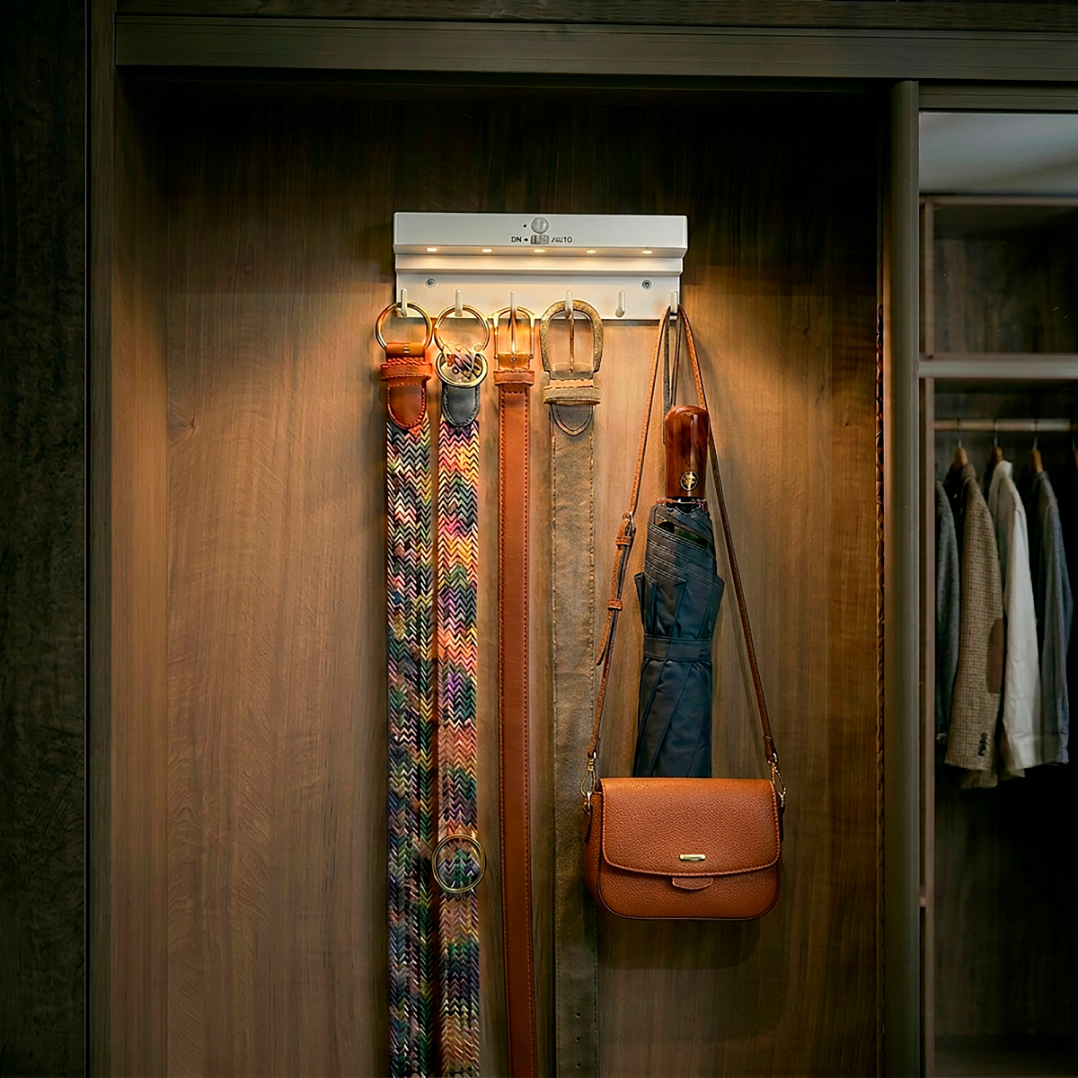 Встроенный датчик движения автоматически активирует подсветку, радиус действия 3 метра. Чуствительность настроена для работы в темном помещении, при включенном основном освещении или днем при наличии естественного света датчик может не срабатывать и это норма.