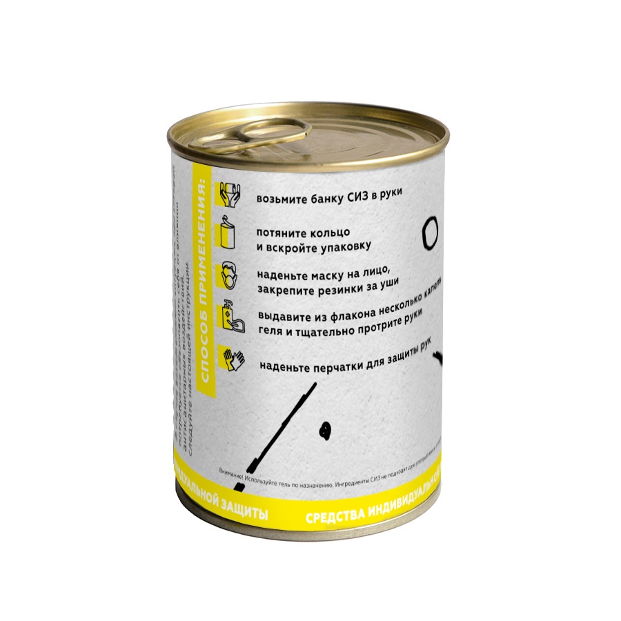 Универсальный комплект защиты на случай угроз здоровью и жизнедеятельности человека. Уникальный продукт! Жестяная запечатанная банка, в которой находятся самые нужные для защиты изделия. Все герметично запечатано и может храниться годами! А значит актуальность подарка будет сохраняться всегда. Набор № 2 состоит из следующих компонетнтов: 1) Защитная х б маска многоразового пользования. Сшита качественно и добротно из 2 слоев ткани. Имеет самозатягивающиеся резинки для крепления за уши и шов посередине, который повторяет форму лица для более качественной фиксации и защиты. На маску возможно нанесение в 1 цвет. Цвет маски - серый 2) Антисептическая жидкость на основе этанола, массовой долей 75%. Предназначен для уничтожения вирусов и бактерий на поверхности рук и лица, для обеззараживания телефона и других предметов обихода. Упаковка – пластиковый пузырек емкостью 50 мл с крышкой. Нанесение на флакон - цветная наклейка. 3) Нитриловые перчатки для защиты рук от попадания на них вирусов и бактерий. Цвет перчаток - белый Стандарный готовый набор поставляется со склада в запечатанном виде, без нанесения на компонентах и без этикетки. Для готовых комплектов, поставляемых со склада можно заказать полиграфическую этикетку для банки, нанесение на ингредиентах в этом случае невозможно. Для заказа комплектов с нанесением на ингредиенты (маска, флакон с антисептической жидкостью) просьба обращаться к мнеджерам продаж. В этом случаае компоненты набора предварительно персонализируются, после чего происходит закатка банки и оклейка этикеткой.