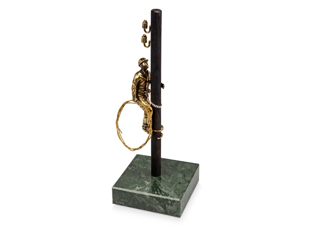 Подарочная композиция со статуэткой электрика, взбирающегося на электрический столб в полном обмундировании.