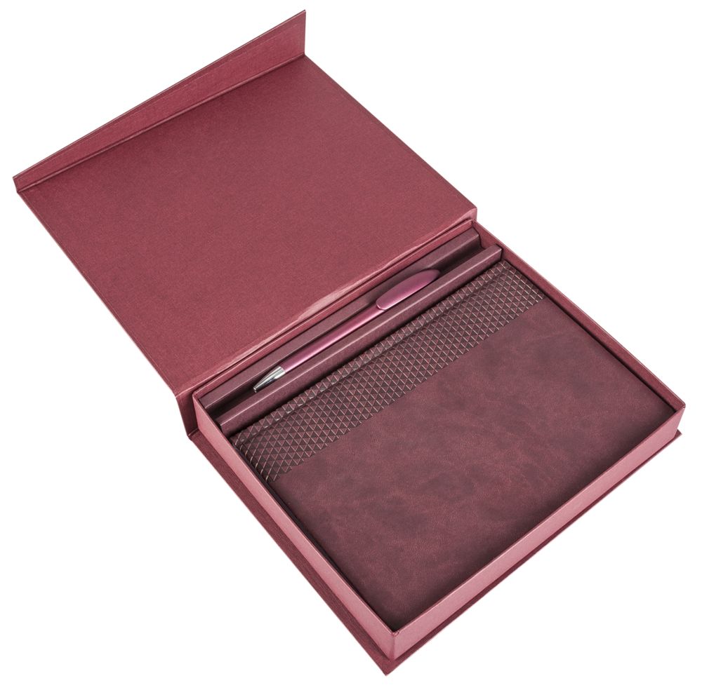 Коробка Duo под ежедневник и ручку, бордовая можно заказать в нашей компании по самой доступной цене от 600 рублей.