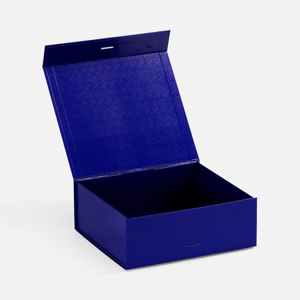 Коробка из переплетного картона с лайнером, ламинированым полуглянцевой текстурной пленкой и устойчивого к царапинам. Крышка на двух магнитах дополнительно фиксируется лентой.Толщина картона 2 мм.