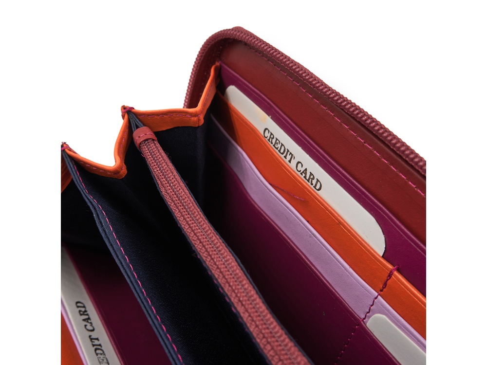 Описание внутри: отделения: 3 основных, 12 для карт, 3 для купюр, 1 на молнии;