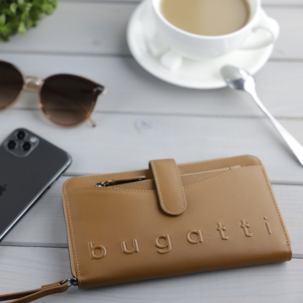 Кошелёк женский BUGATTI Daphne с ключницей, коньячный цвет, воловья кожа/полиэстер, 19х3х11 см можно заказать в нашей компании по самой доступной цене от 9 720 рублей.