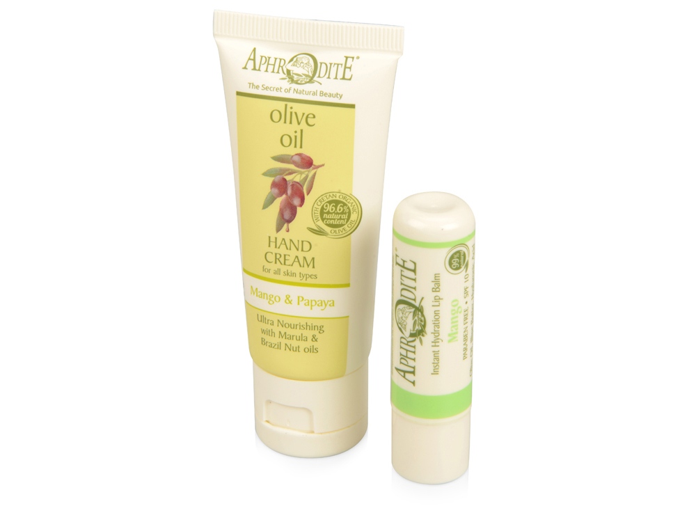 Наша кожа каждый день нуждается в комплексном уходе, включающим в себя питание и увлажнение. И вдвойне приятно, когда забота о красоте и здоровье кожи окутана шлейфом экзотического аромата.В подарочный набор Экзотическое ультрапитание входят средства, необходимые для ежедневного ухода за кожей. Питательный крем для рук с манго и папайя и увлажняющий защитный бальзам для губ с манго, произведенные на основе натурального оливкового масла, делают кожу мягкой и шелковистой.Сделайте подарок близким или возьмите в путешествие набор оливковой косметики с приятными нотами манго и папайя!В набор входит:-Питательный крем для рук с манго и папайя 30мл-Защитный бальзам для губ с манго 4г.