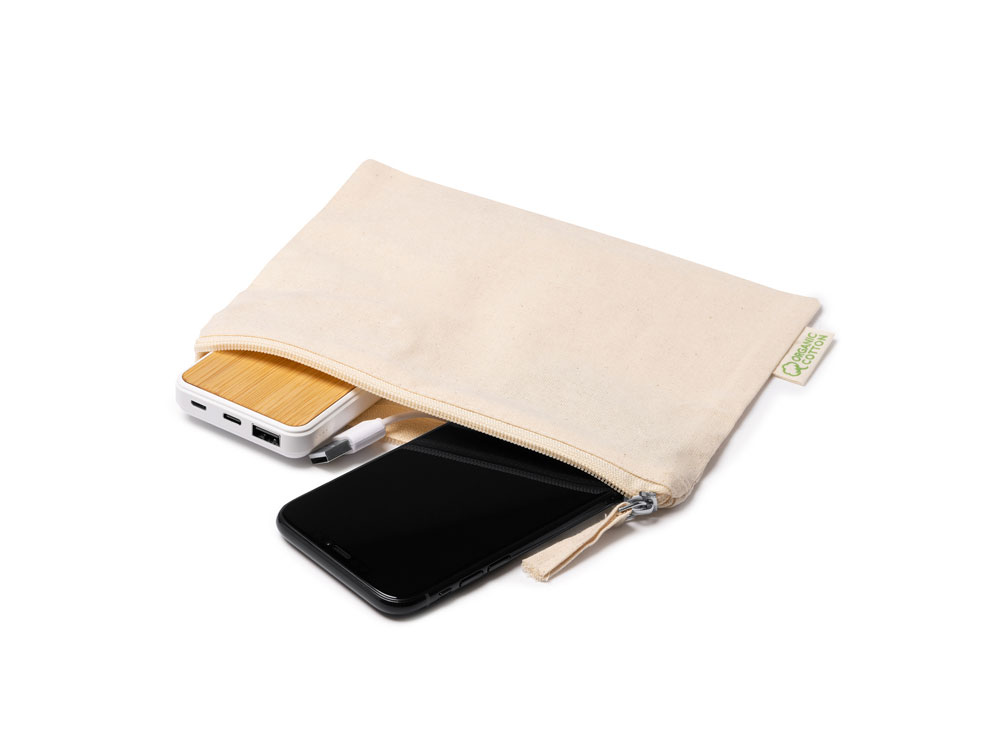 Косметичка из 100% органического хлопка плотностью 180 г/м² с хлястиком в тон.