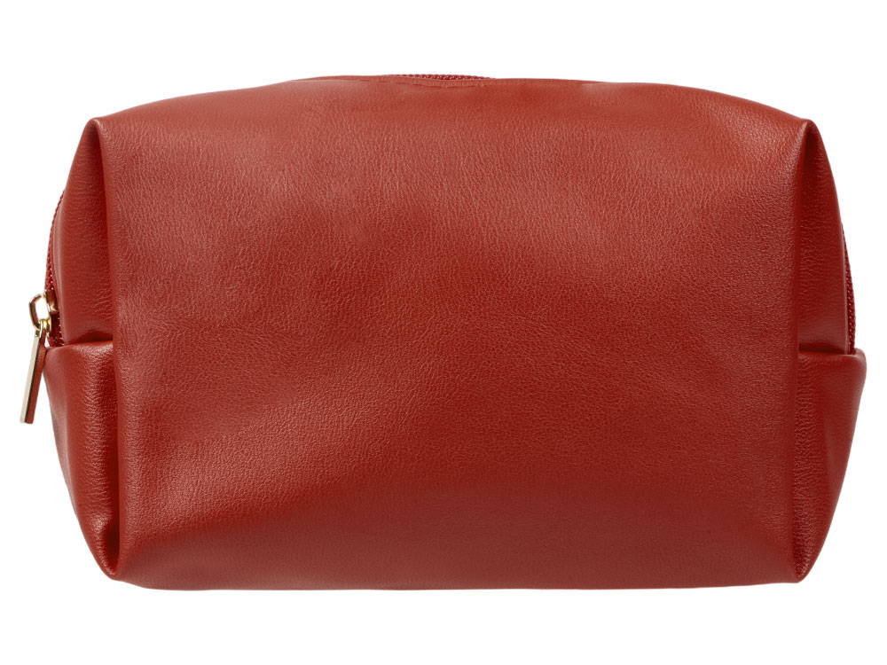 Косметичка из искусственной кожи удобной и вместительной формы. Внутри подклад серого цвета с карманом для маленьких предметов.