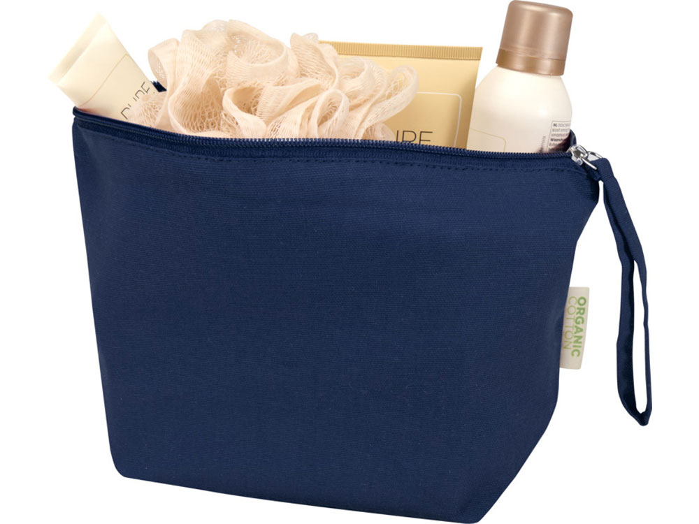 Большая и вместительная косметичка Odisha изготовлена из 100% сертифицированного OCS органического хлопка плотностью 180 г/м², произведенного в Индии. Имеет ремешок для удобной переноски. Объем: 3 литра.