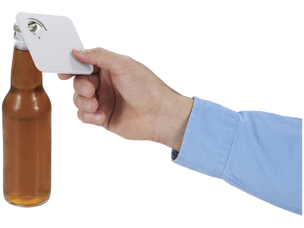 Костер Rally с открывалкой. Квадратный костер с интегрированной открывалкой и нижним покрытием из пены для предотвращения скольжения. АБС пластик.