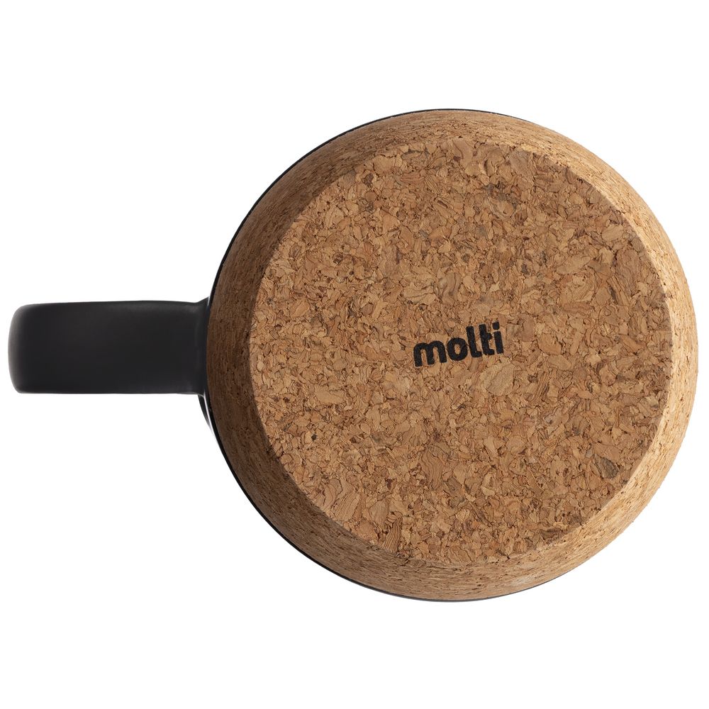 Противоскользящая пробковая подставка защищает дно кружки от случайного удара об стол и препятствует образованию конденсата на столе, если напиток окажется слишком горячим.
