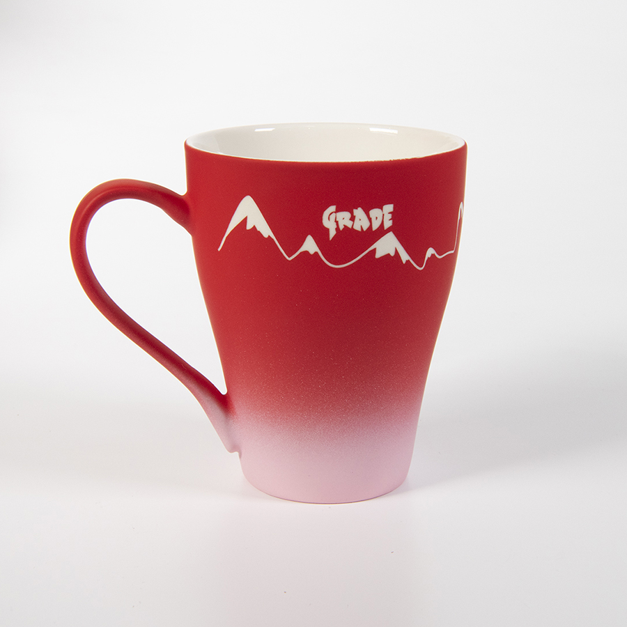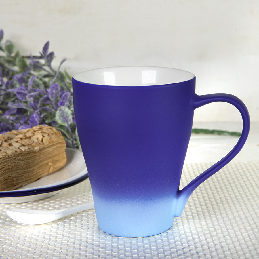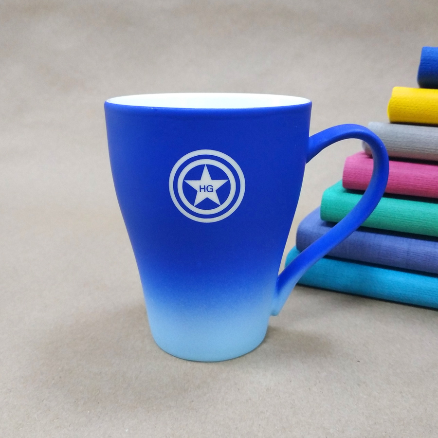 Переход от насыщенного оттенка в основной части кружки к совсем светлому внизу, для более выгодного представления логотипа на темной части Градиент - модный тренд, для его создания используются различные техники, краски и материалы, берутся различные цветовые сочетания