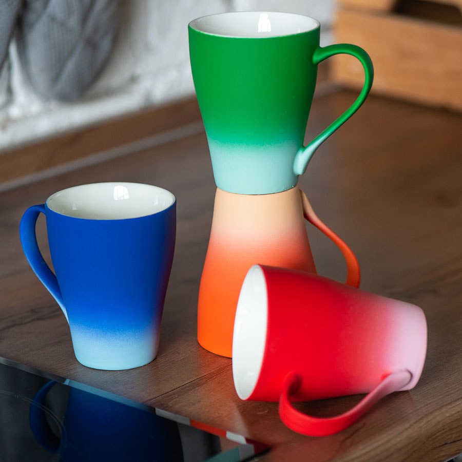 Кружка с прорезиненным покрытием и цветовым градиентом