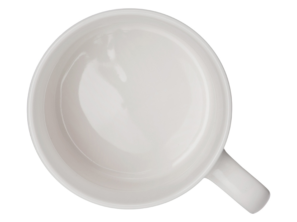 Кружка из костяного фарфора с удобной ручкой прямоугольной формы, которая выделяет ее из множества других белых чашек. Объем — универсальный, угодит любому: 370 мл подойдут и для кофе, и для чая, и тем, кто до последнего откладывает поход на кухню за новой порцией напитка. А еще обратите внимание на донышко: благодаря его форме такие кружки можно ставить одна на другую, что позволит сэкономить место на офисной кухне.