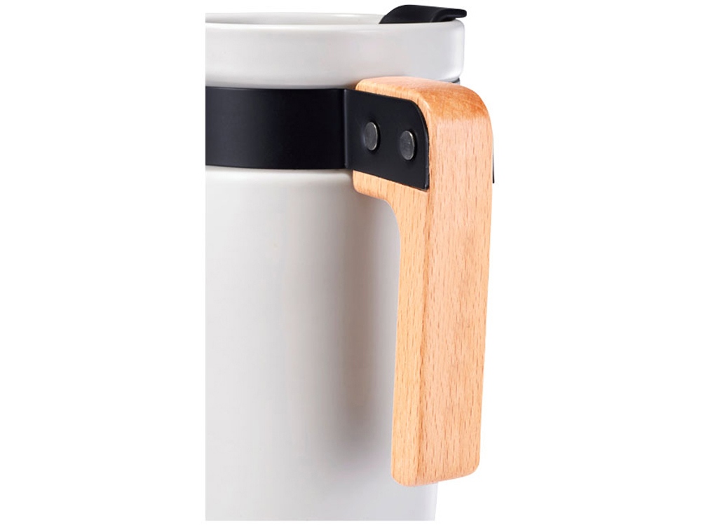Керамическая кружка с ручкой из дерева скомбинирована с ободом из нержавеющей стали, имеет черное матовое покрытие. В комплекте также идет крышка с закрывающим клапаном. Кружка представлена в подарочной коробке Avenue.